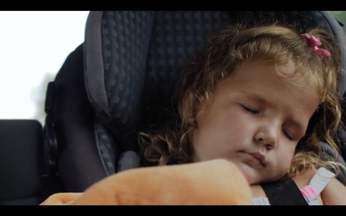 As the viewer follows a joyful trip to the beach by a family with three young children, innocence and happiness give way to the unthinkable. While the day unfolds on-screen, the audience comes to realize, through subtle audiovisual cues, that a tragedy has occurred: one of the three children has drowned. Decisions are made in a state of shock, and the blurred lines between the rational and irrational interrupt and fragment the journey back home. The parents opt to bring their dead son back in the same car with the two other children pretending as if he is sleeping.