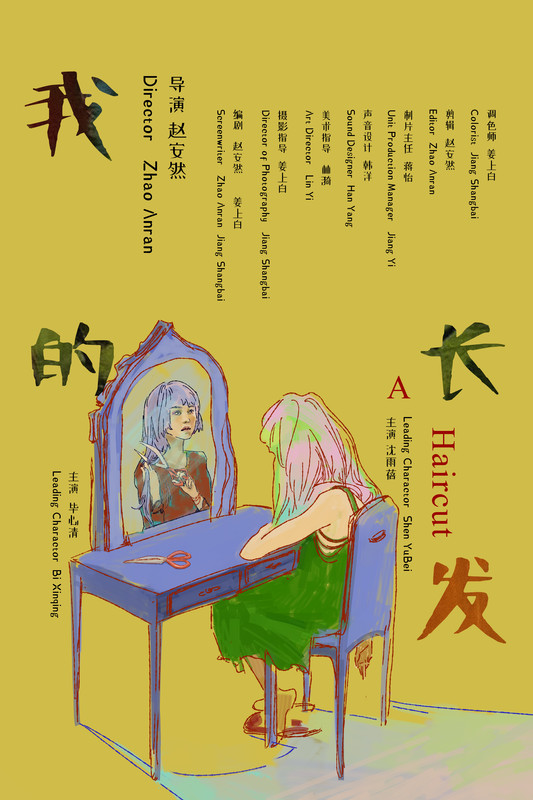 A HAIRCUT, 15min,. China, Drama Directed by Anran Zhao High school student Xiao Ruan likes her long and black hair; after she learned that the new school has a rule that girls must keep short hair; she decided to use the wig to disguise herself. Jiang Yu, the monitor who has been protecting herself with a wig as well, could easily see Xiao Ruan’s secret and they became good friends, but when the two girls secretly rejoiced for their success, Jiang Yu was discovered by the head class teacher.