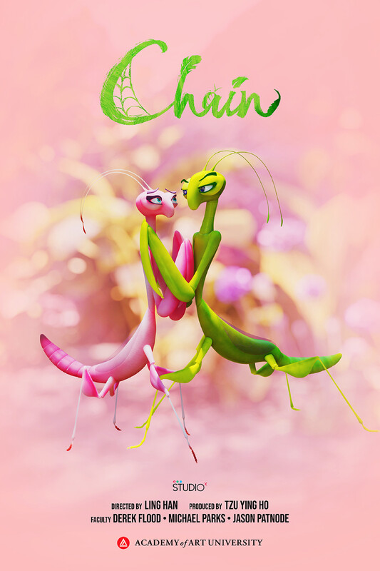 “Chain,” directed by Ling Han, is a 3D animated short film featuring charming characters and a sophisticated environment. It uniquely tells the story of the mantis catching the cicada, unaware of the oriole behind.