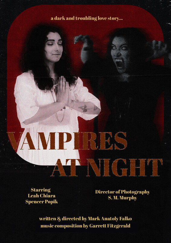 VAMPIRES AT NIGHT, 20min., Canada Directed by Mark Anatoly Falko A young happy couple are attacked by a vampire. Soon, the young woman transforms into a monster. Will true love prevail?
