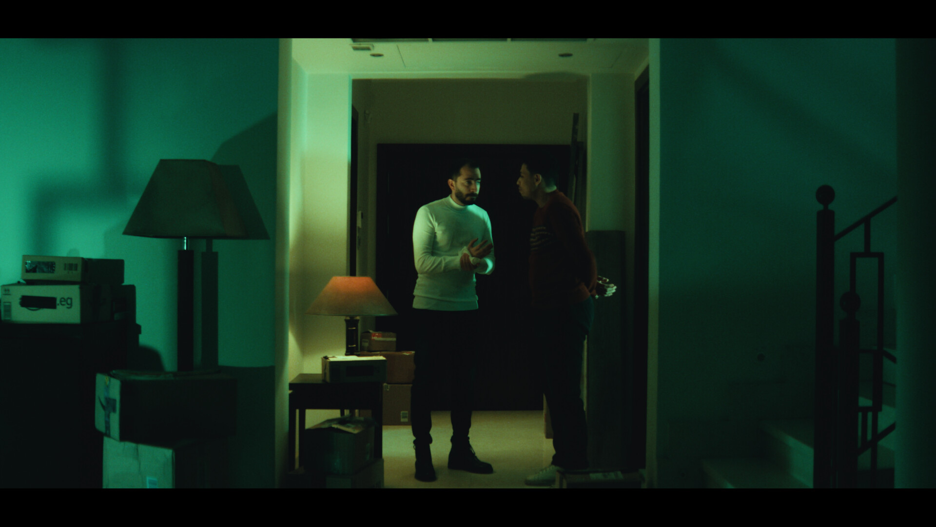 “Loay,” a young man invites his friend “Oday” over to help him move into a new house. As “Oday” finishes bringing in boxes, “Loay” asks him for one last favor: to take a specific box upstairs while warning him to avoid the mysterious room on the left. Curiosity gets the better of “Oday”, and he enters the forbidden room, initially finding it ordinary. However, he soon hears unsettling knocking from the room bathroom and discovers that each time he closes the door, the knocking resumes.