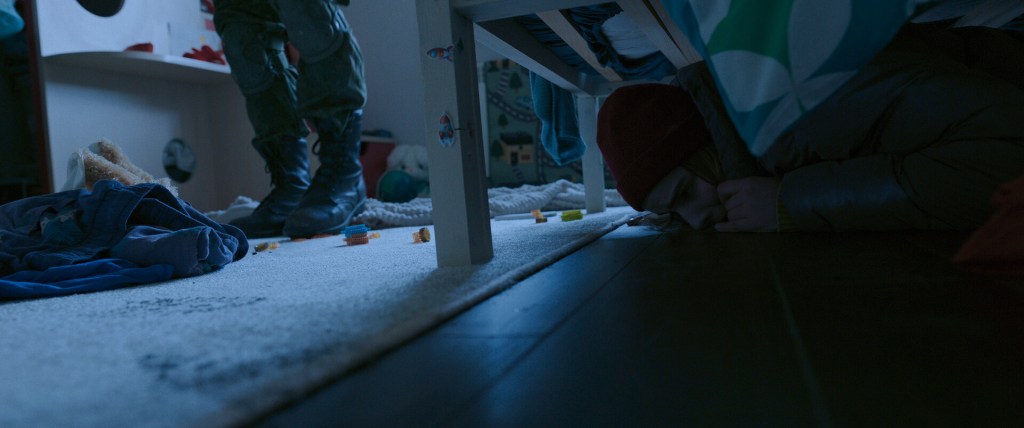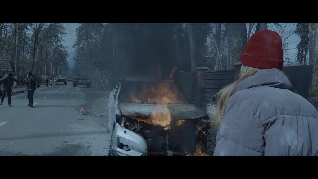 Seventeen-year-old hearing-impaired Olga, along with her father Roman, stepmother Marina and younger brother Sashko, is about to embark on a dangerous journey to the west of the country to escape advancing Russian tanks. Tragedy strikes when Roman’s car is destroyed near their country house and the whole family is trapped amidst chaos and despair in the quiet town of Bucha near Kyiv. The Russians enter the house and effectively take the family as hostages, forcing Olga, who has been hiding to come out from her shelter. Roman is being beaten and interrogated. Marina and Sashko find themselves locked in the basement. Fleeing the violence, Olga establishes contact with a handsome young Russian soldier nicknamed Swan and negotiates to save the family in exchange for money. However, Swan turns out to be a scoundrel and, after receiving the money, tries to rape Olga. One of the soldiers, Private Shalaev unexpectedly stands up in defence of the girl, but is killed by his own soldiers. Olga is doomed. Besides, she learns from Marina that her father, whom she accused of betrayal for many years, is not really her own father. Swan gets permission to dishonour the girl and then execute her, but he is killed by the badly wounded Roman. Roman asks Olga to lead Marina and Sashko out of Bucha, as only she knows the way through the forest. Roman sacrifices himself to cover their retreat. Olga, Marina and Sashko try to evade pursuit and hide in the forest. Marina is killed in front of her son by a grenade thrown by a Russian sergeant. Olga, who has lost her hearing aid, makes a last effort to save her younger brother. But after getting lost in the forest, she stumbles into a military roadblock. Hope is lost. Olga is sure that this is the last moment in their lives.
