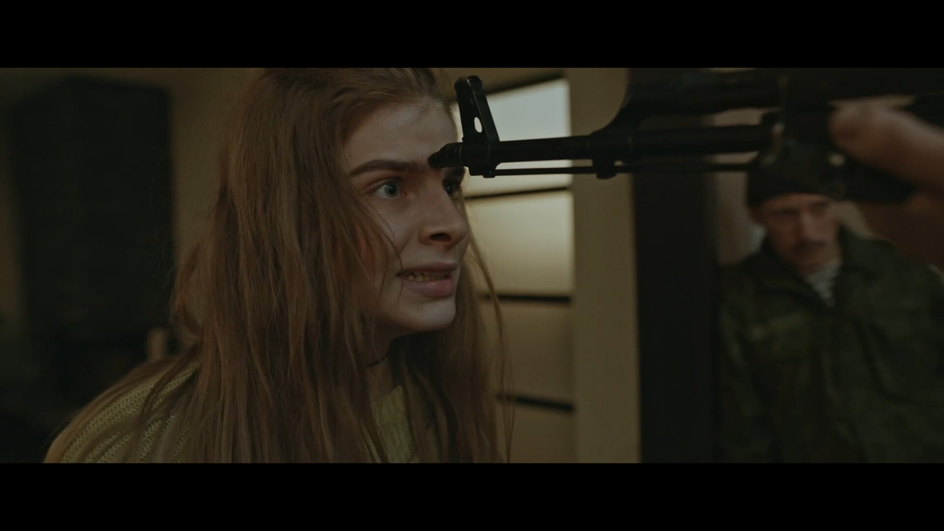 Seventeen-year-old hearing-impaired Olga, along with her father Roman, stepmother Marina and younger brother Sashko, is about to embark on a dangerous journey to the west of the country to escape advancing Russian tanks. Tragedy strikes when Roman’s car is destroyed near their country house and the whole family is trapped amidst chaos and despair in the quiet town of Bucha near Kyiv. The Russians enter the house and effectively take the family as hostages, forcing Olga, who has been hiding to come out from her shelter. Roman is being beaten and interrogated. Marina and Sashko find themselves locked in the basement. Fleeing the violence, Olga establishes contact with a handsome young Russian soldier nicknamed Swan and negotiates to save the family in exchange for money. However, Swan turns out to be a scoundrel and, after receiving the money, tries to rape Olga. One of the soldiers, Private Shalaev unexpectedly stands up in defence of the girl, but is killed by his own soldiers. Olga is doomed. Besides, she learns from Marina that her father, whom she accused of betrayal for many years, is not really her own father. Swan gets permission to dishonour the girl and then execute her, but he is killed by the badly wounded Roman. Roman asks Olga to lead Marina and Sashko out of Bucha, as only she knows the way through the forest. Roman sacrifices himself to cover their retreat. Olga, Marina and Sashko try to evade pursuit and hide in the forest. Marina is killed in front of her son by a grenade thrown by a Russian sergeant. Olga, who has lost her hearing aid, makes a last effort to save her younger brother. But after getting lost in the forest, she stumbles into a military roadblock. Hope is lost. Olga is sure that this is the last moment in their lives.
