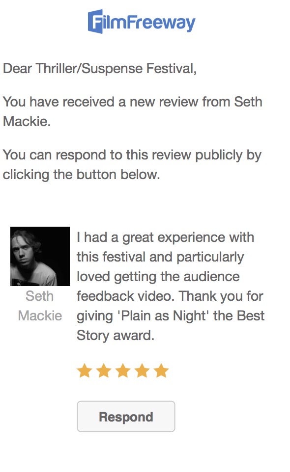 Hey, was an honor to have my film “Unverified” accepted into the festival and the winning the Best Feature award. Also, appreciated the feedback footage. Thanks for what you do!