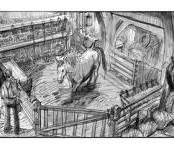 Stephen Forrest-Smith: There really is no normal to my job anymore. Every project seems to be different now and asks for a different approach. A film project could call on a storyboard artist at any stage from pre-pre production, ( when the film is trying to get funding) right the way through to post production for VFX, (after principal photography has been completed). The bulk of my work tends to be early in the pre-production taking the first pass at sequences to get the ball rolling on them. Usually I’d start with a chat with a Director, though it could be VFX supervisor or production designer and then work on from there. I used to expect to finish when filming starts but now I might stay almost to the end of shooting then be called back for reshoots and post production.