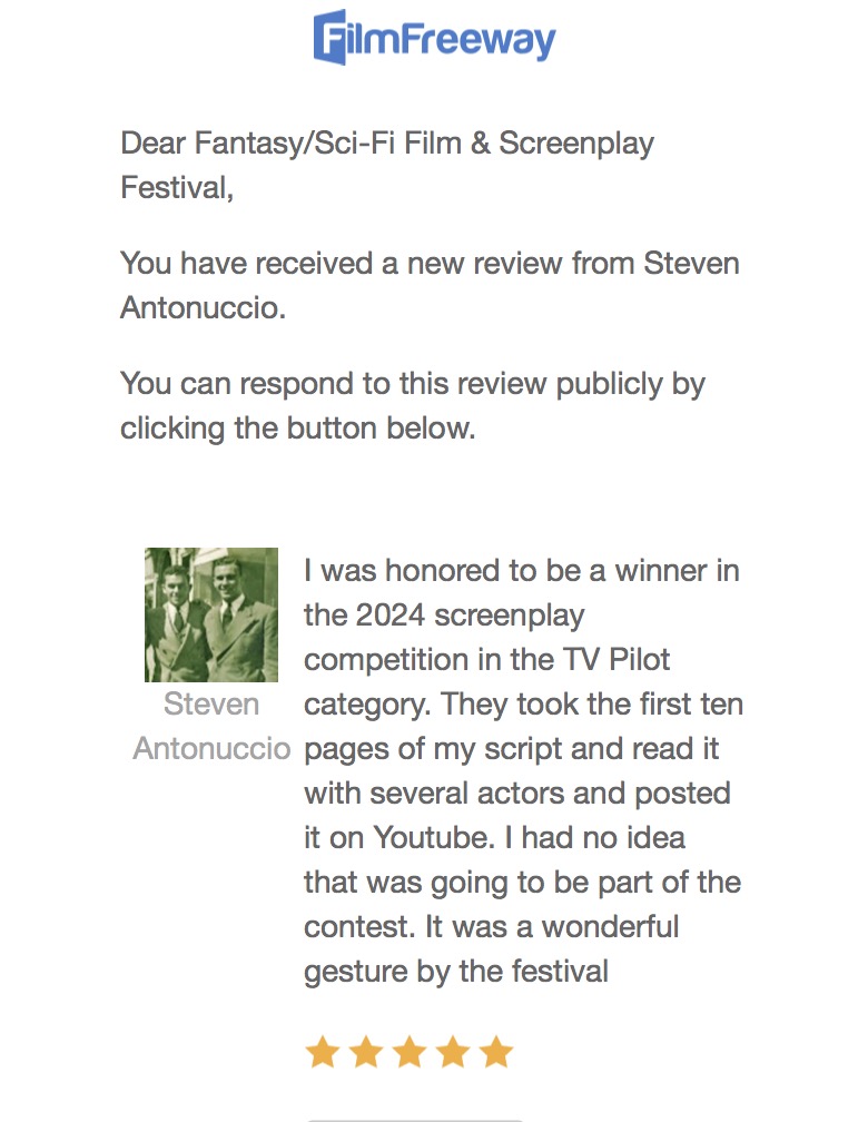 Accepted Screenplays get their work performed by professional actors at the writing festival. 3-5 weeks after submitting, you will be sent an email with your full feedback and told if your script is ready to be performed at our festival. We do not have finalists etc.. It is either a winner or a rewrite is suggested and you have a chance to re-submit at a discount rate.