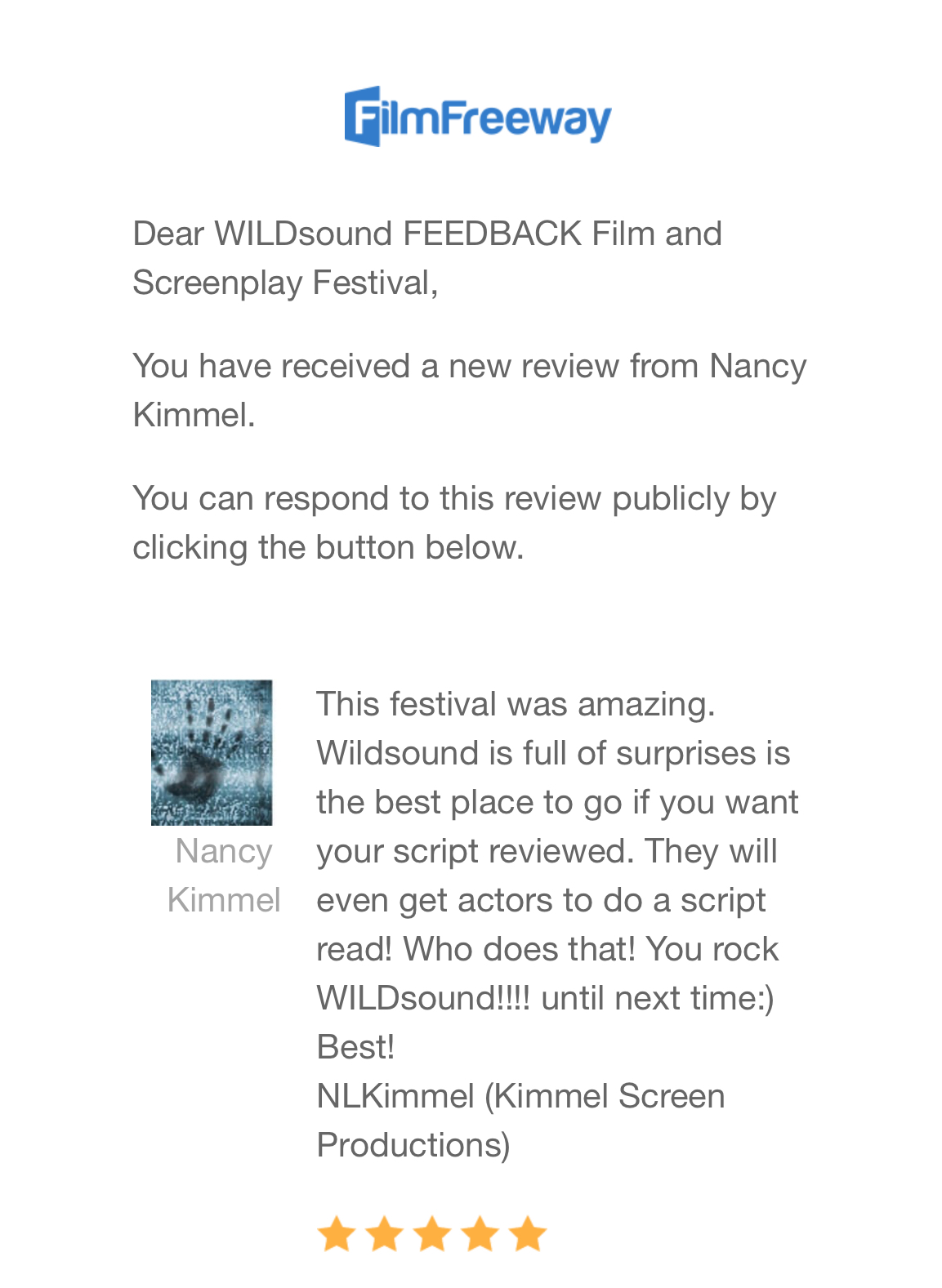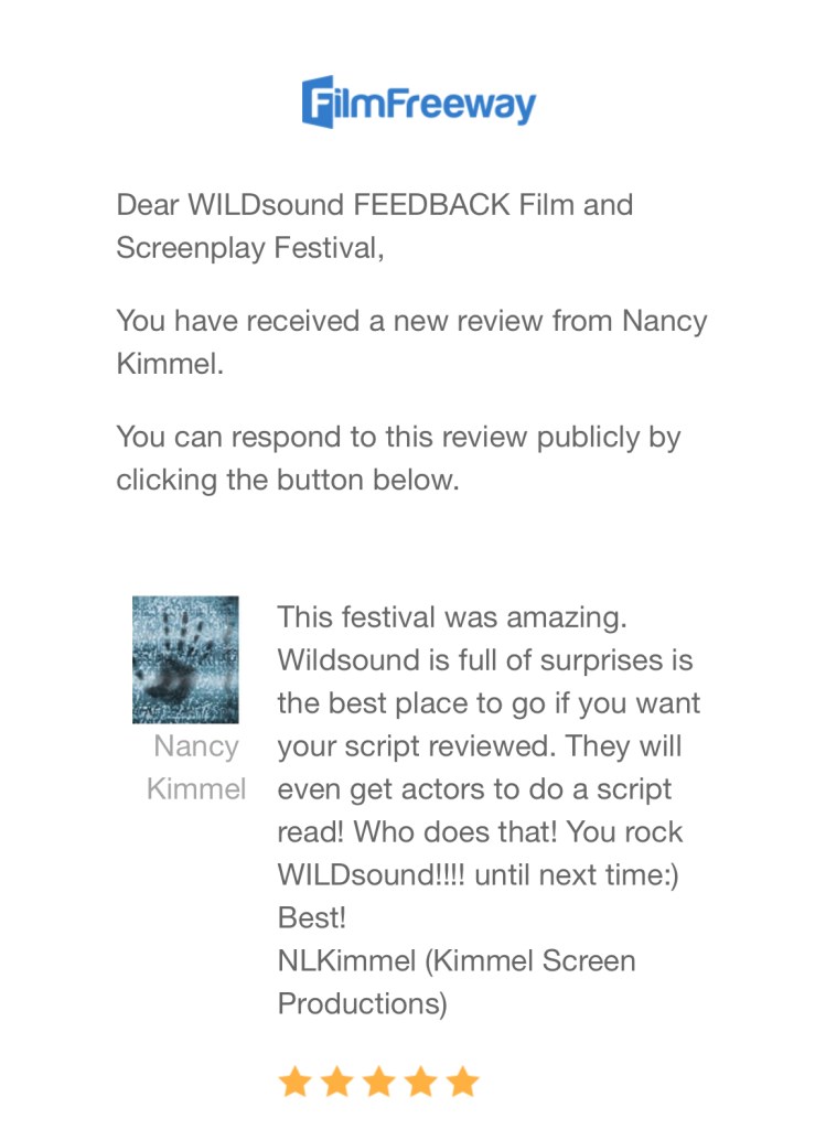 This festival was amazing. WILDsound is full of surprises is the best place to go if you want your script reviewed. They will even get actors to do a script read! Who does that! You rock WILDsound!!!! until next time:)
