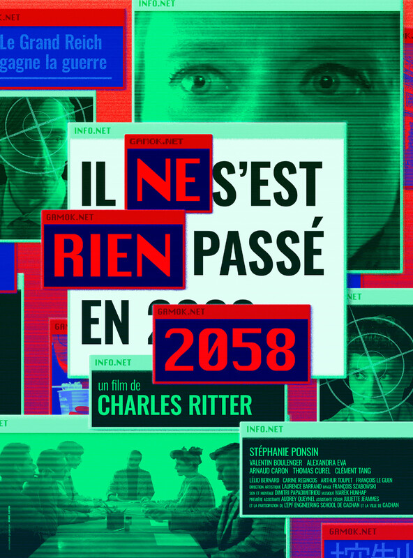 Nothing happened in 2058, 30min., France Directed by Charles Ritter 2058. France is part of the Greater Reich, winner of the Second World War. All the world’s documents have been digitized by GAMOK, which has become the sole reference in History.