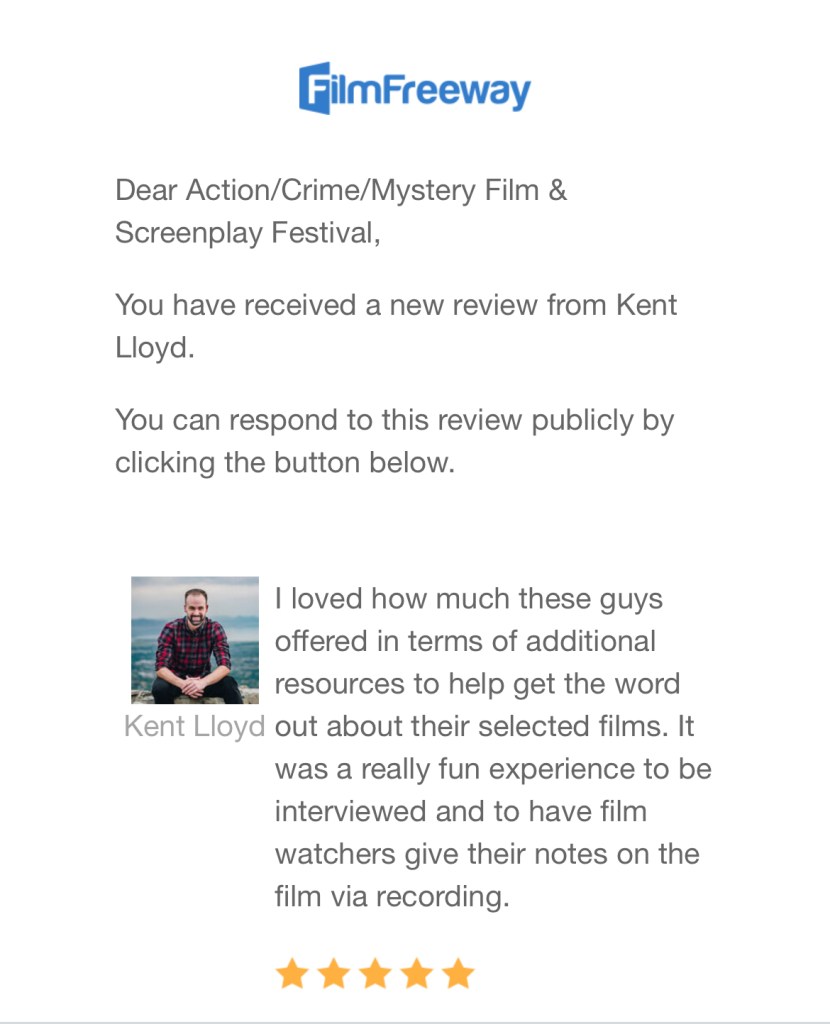 Today’s FilmFreeway Testimonial: ACTION/FANTASY/SCI-FI/THRILLER Festival (32 FIVE Star Reviews!) October 8, 2025 festreviews filmfreeway, FilmFreeway ReviewToday's FilmFreeway Testimonial: ACTION/FANTASY/SCI-FI/THRILLER Festival (32 FIVE Star Reviews!) Submit to the Festival via FilmFreeway. Deadline Today: Awesome festival, can’t wait to see what you do in the future and how you grow! Very honored to have won best story!!!! Wukong Couriers!!! Share this: Click to share on X (Opens in new window) X Click to share on Facebook (Opens in new window) Facebook Click to share on LinkedIn (Opens in new window) LinkedIn Click to share on Tumblr (Opens in new window) Tumblr Click to share on Pinterest (Opens in new window) Pinterest Like Loading... Related