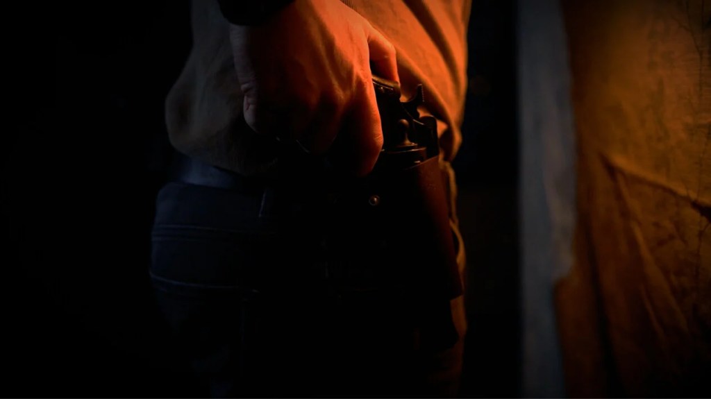 The location and props have all the trappings of a classic frontier tale – – the piece is set in a rickety wood saloon with flickering candlelight, and a sly, villainous face appears on yellowed ransom signs hanging on the dusty walls. As in many a barroom scene, the fight choreography is impressive, as is the resulting gore. Remarkable sound design engulfs the piece with atmospheric nuggets, such as heavy footsteps on the creaky floors, horses neighing, women screaming, gunshots, slow-paced harmonica, and the repeated use of a vibraslap to emulate a rattlesnake.