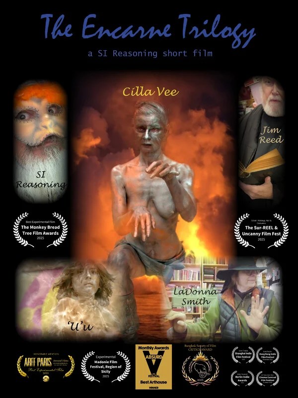 The Encarne Trilogy is a series of no-budget shorts regarding the creation of my son and his entrance into the physical plane. It won Honorable Mention for Best Experimental Film at the 2025 Paris Around Films International Film Festival (ARFF), Best Arthouse in the Absurd Film Festival Monthly (Milan) July 2025, and Bangkok Society of Film Critics Award for Experimental Film at the Bangkok Movie Awards for July 2025.