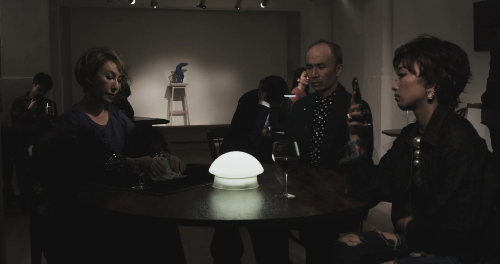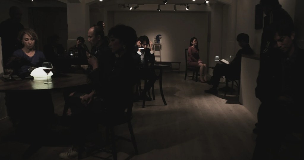 The cinematography is also breathtaking. The couple discussing attraction are first introduced by fading like ghosts in and out of the scene, flickering like lights. It’s poignant for the story, as it adds to the art of the film. The drunks overlap, yet each is still able to be distinctly seen. The way shadows and light play off the art pieces behind the patrons gives depth to each story and the set.