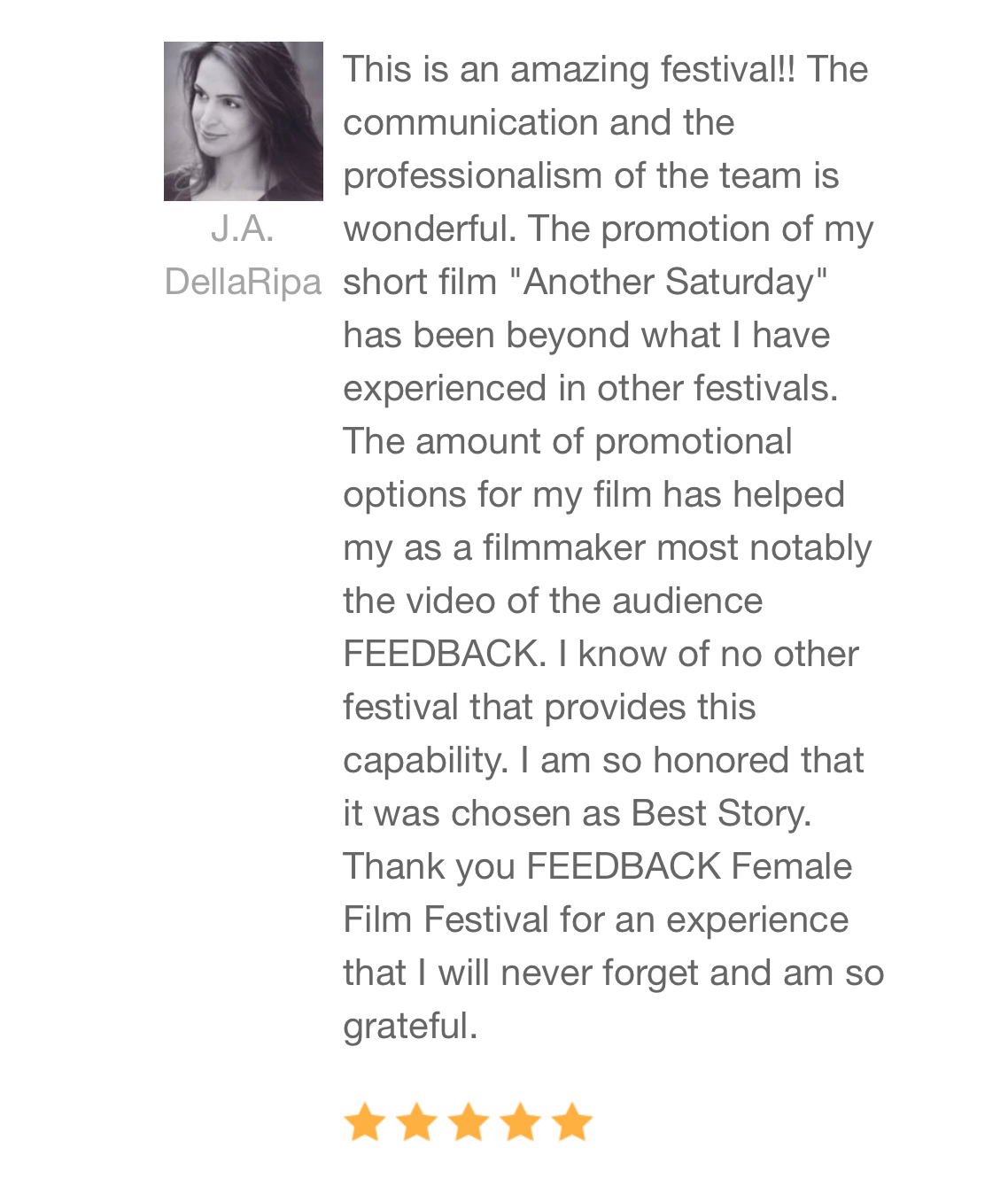 1) Screening #1 where you will also obtain your audience feedback video (private screenings).