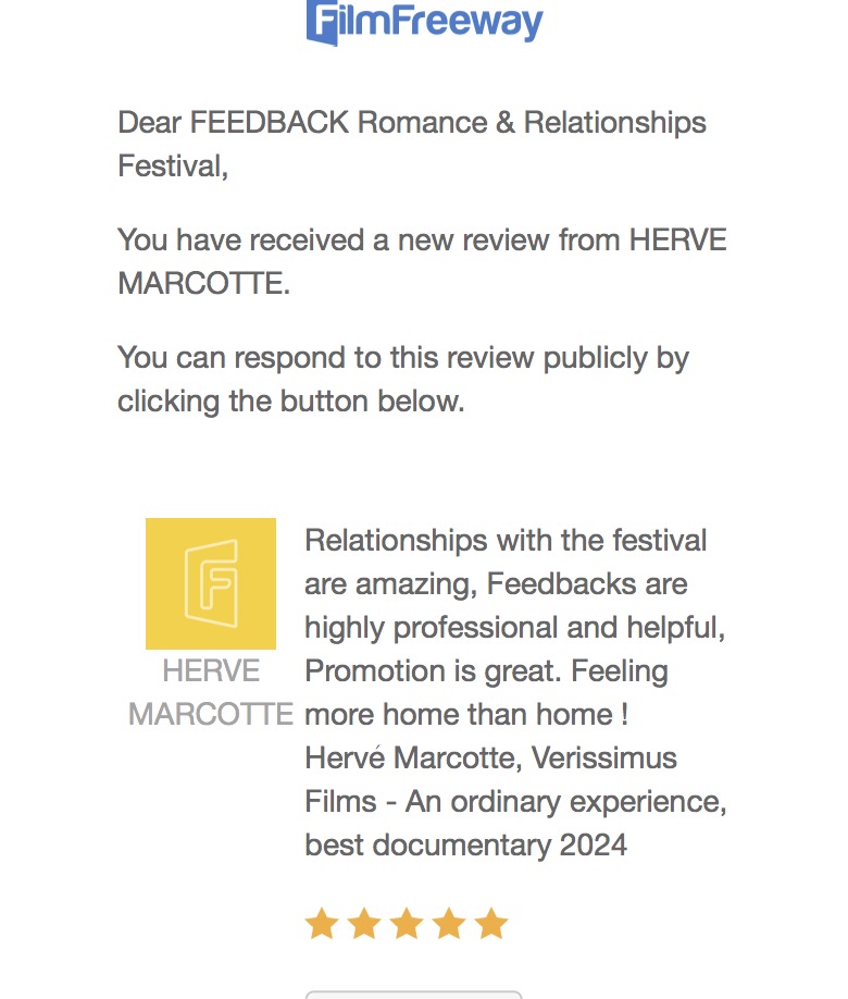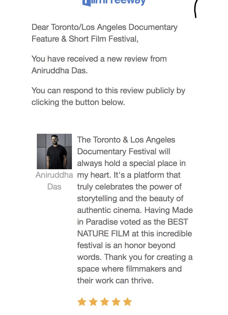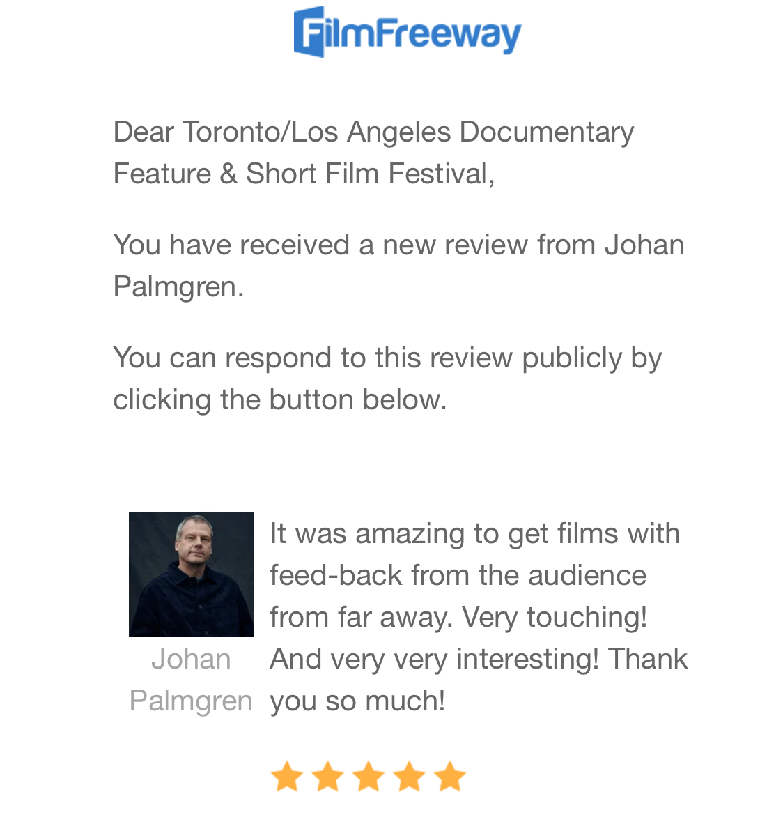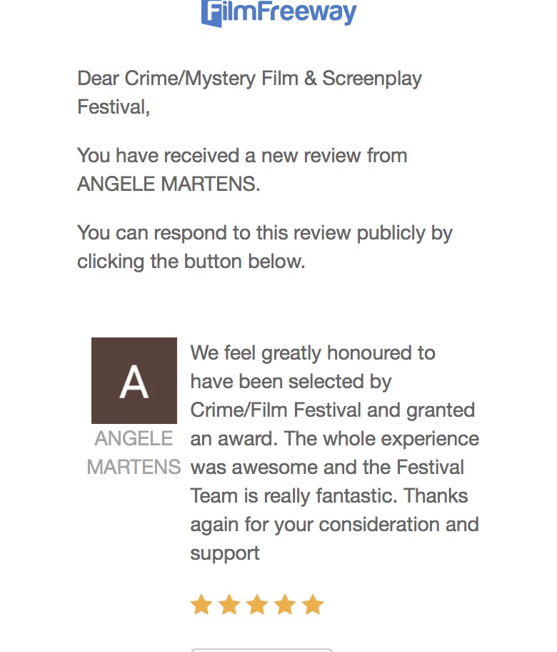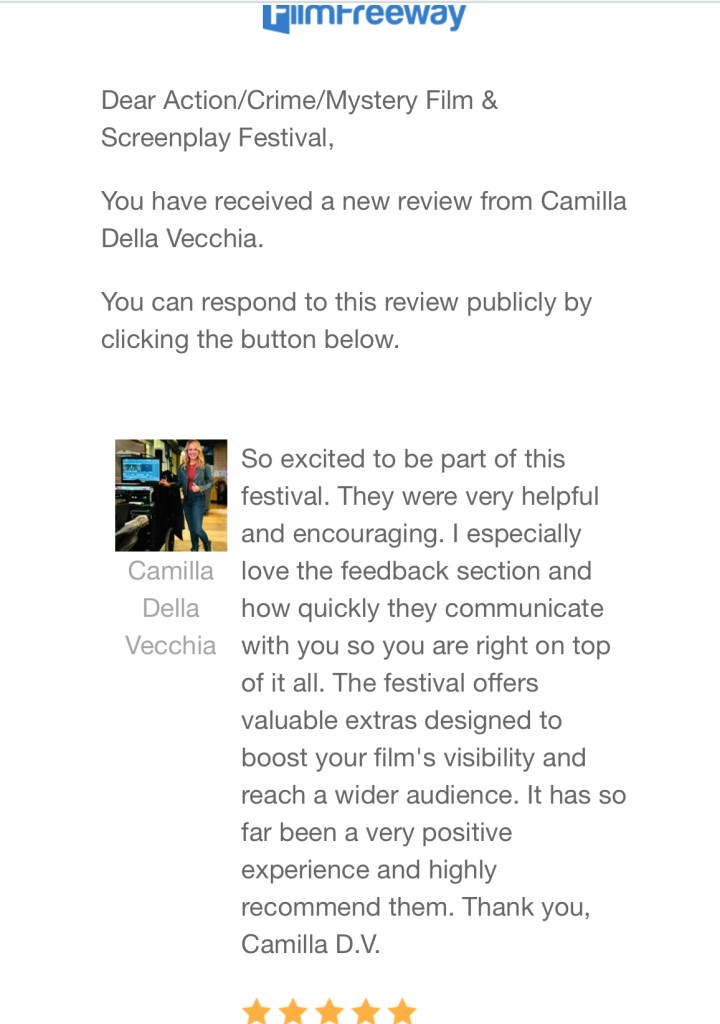Great festival! Very quick to respond and give feedback. It was a pleasure to be a part of and be selected. Thank you!