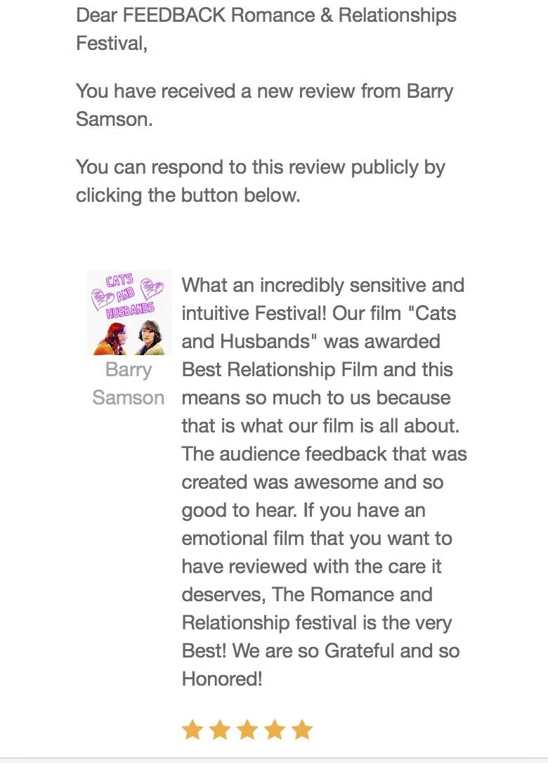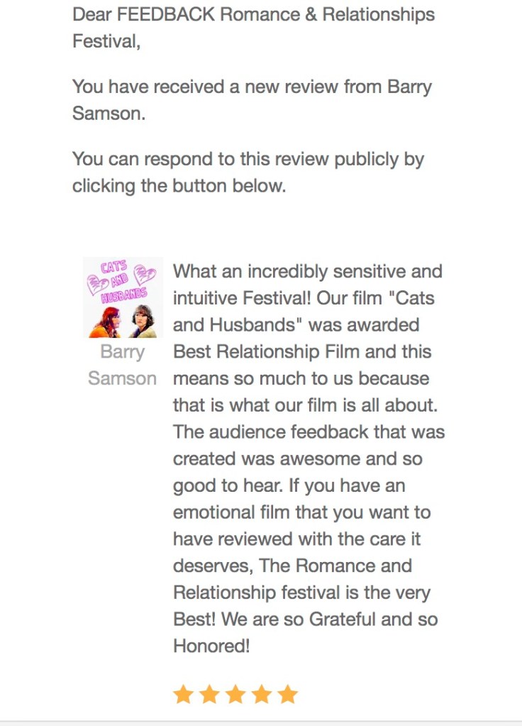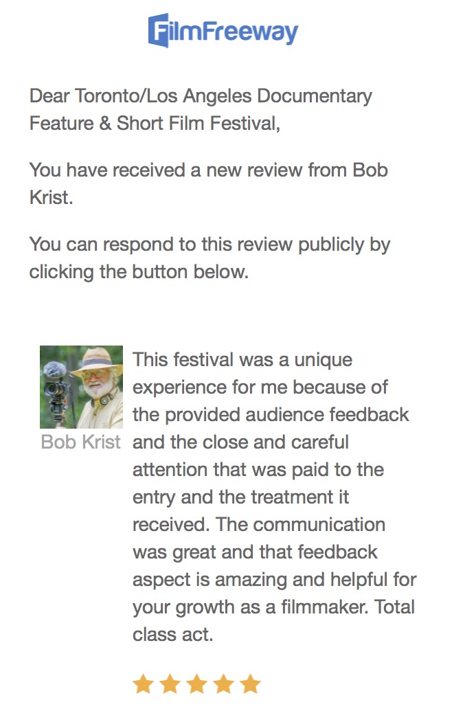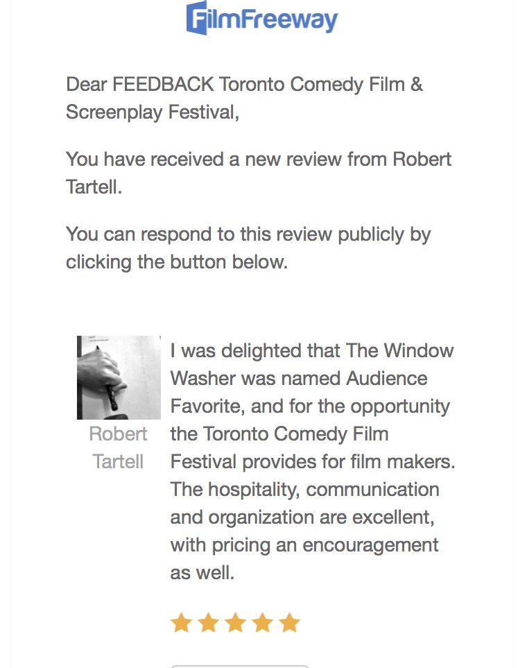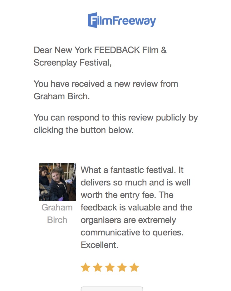 Great festival! Very quick to respond and give feedback. It was a pleasure to be a part of and be selected. Thank you!